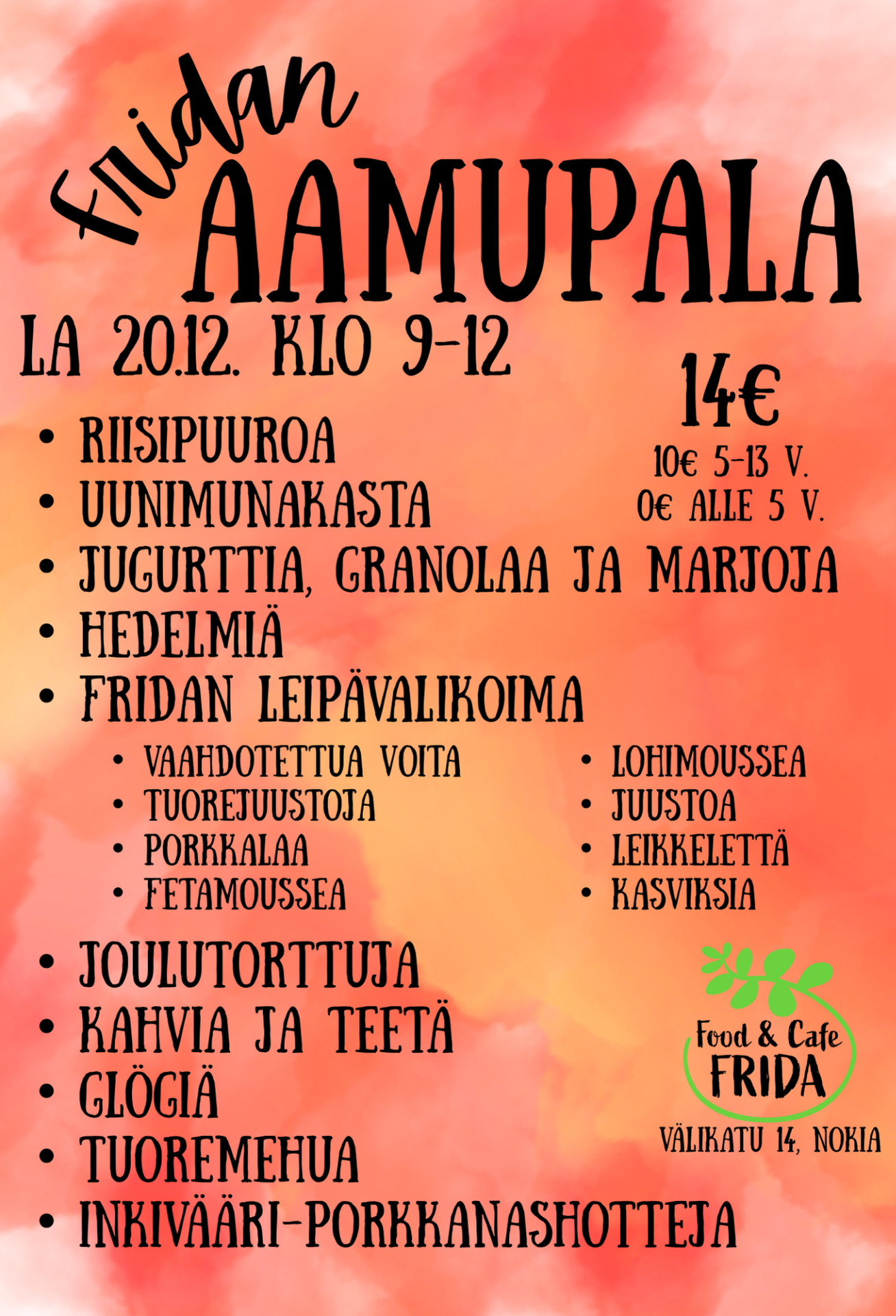 Varaa paikkasi ennakkoon frida.nokia@outlook.com