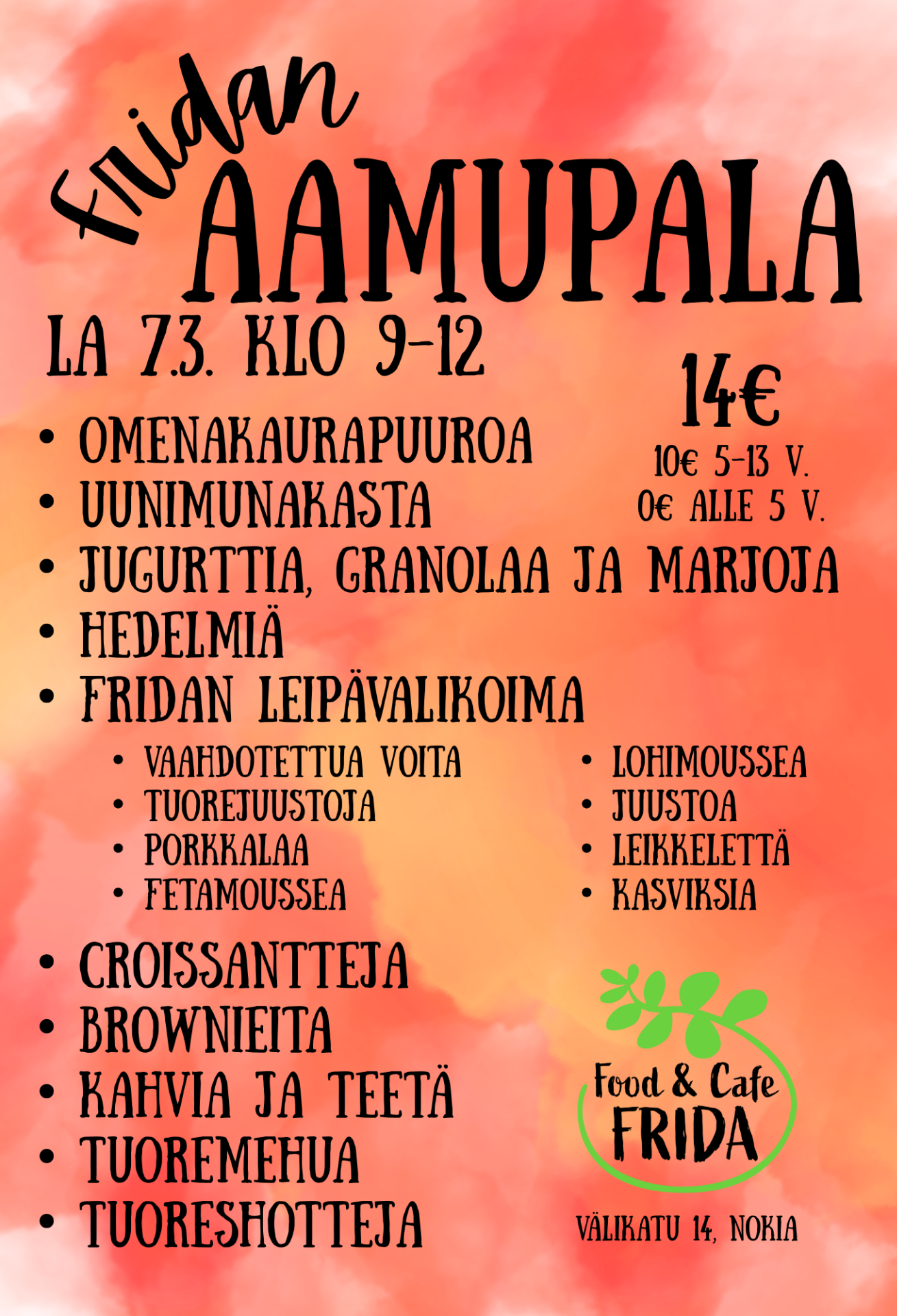 Varaa paikkasi ennakkoon frida.nokia@outlook.com